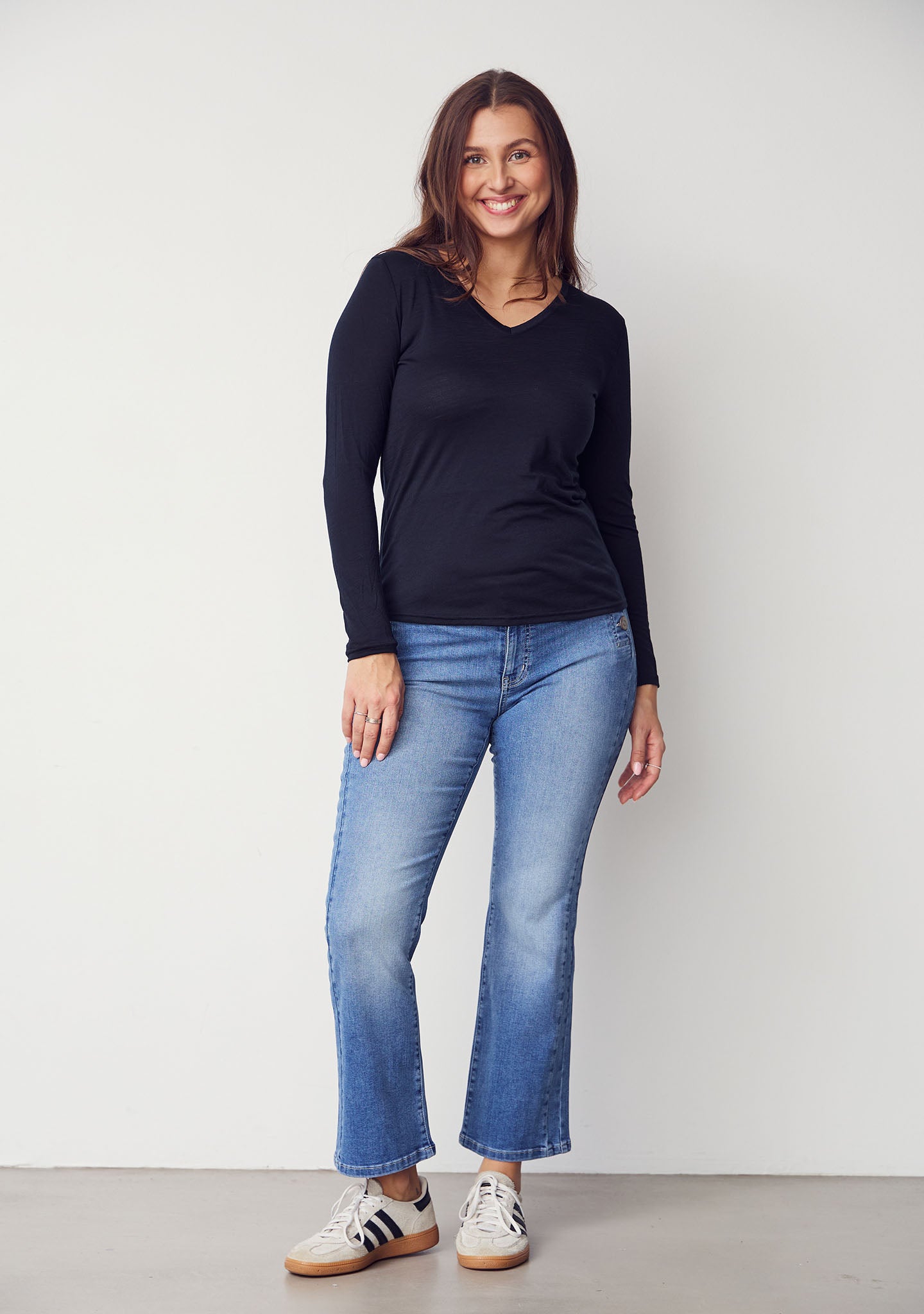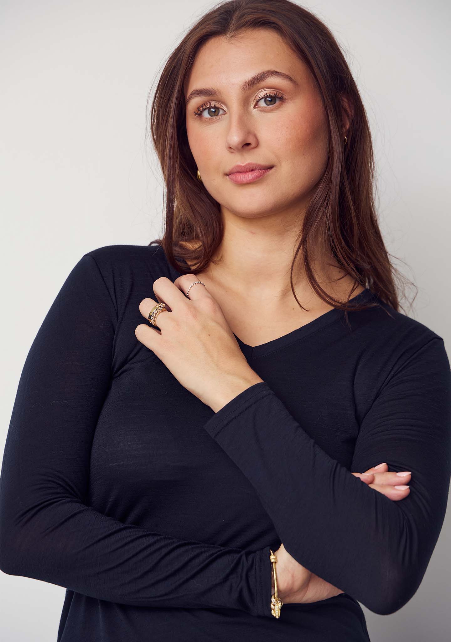 Nelly l/s T-shirt er en langærmet trøje i høj kvalitet, som er utrolig blød og varm. Den har en flatterende pasform, der tilpasser sig din krop, og er lavet af 100% merinould, som regulerer din kropstemperatur i både koldt og varmt vejr. Du slipper for generende vaskemærker og logomærker, da vi har trykt dem på nakken i trøjen, så du nemt kan se, hvordan du skal pleje den. Nelly l/s T-shirt er det perfekte inderlag til den kolde tid. Du kan bruge den året rundt – fordi den er tyndere og blødere end almindelig uld og ikke klør eller irriterer huden.
