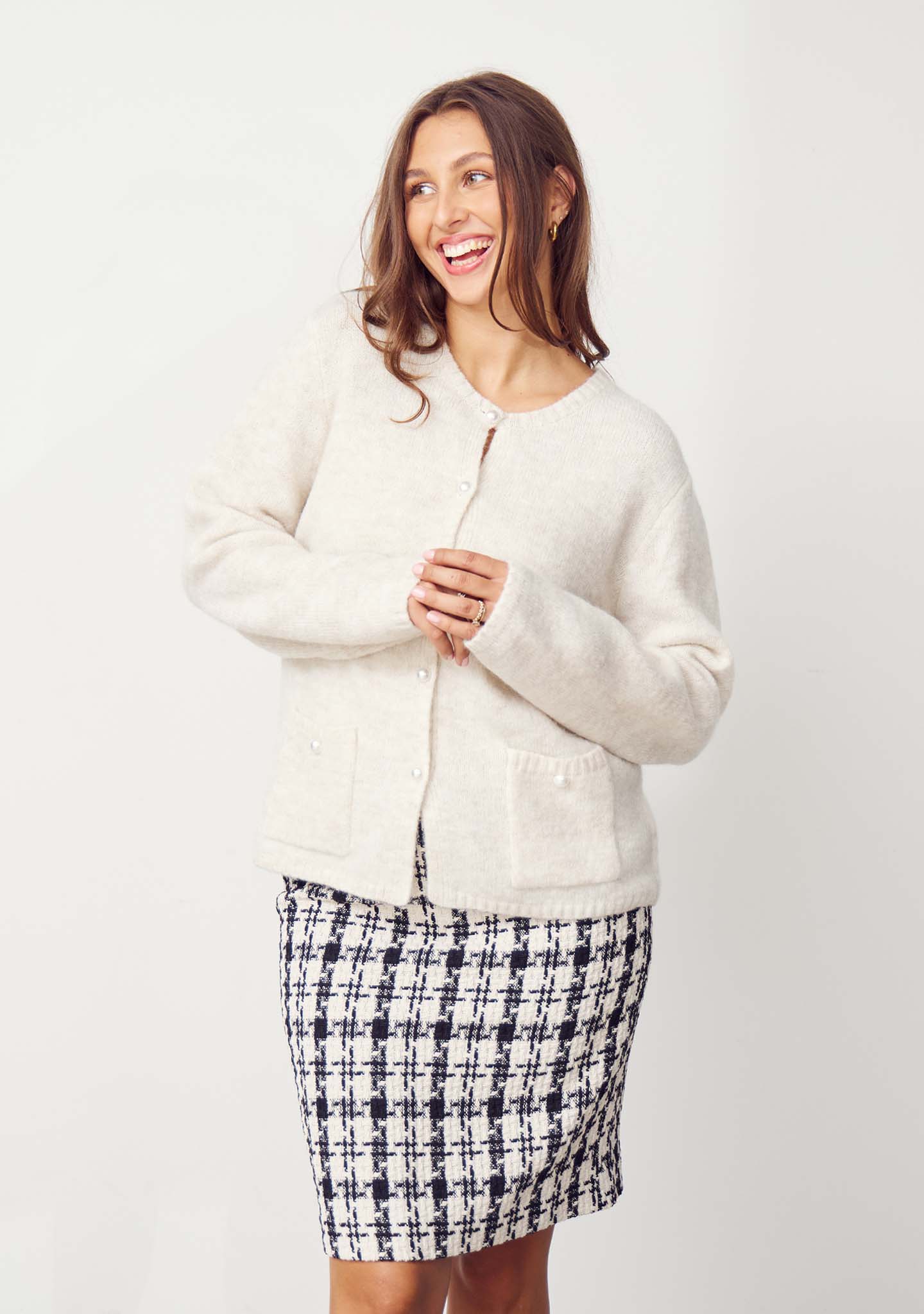 Anna Classic Cardigan er perfekt som et lag over skjorter, bluser eller kjoler – både til hverdagsbrug og pænere anledninger.