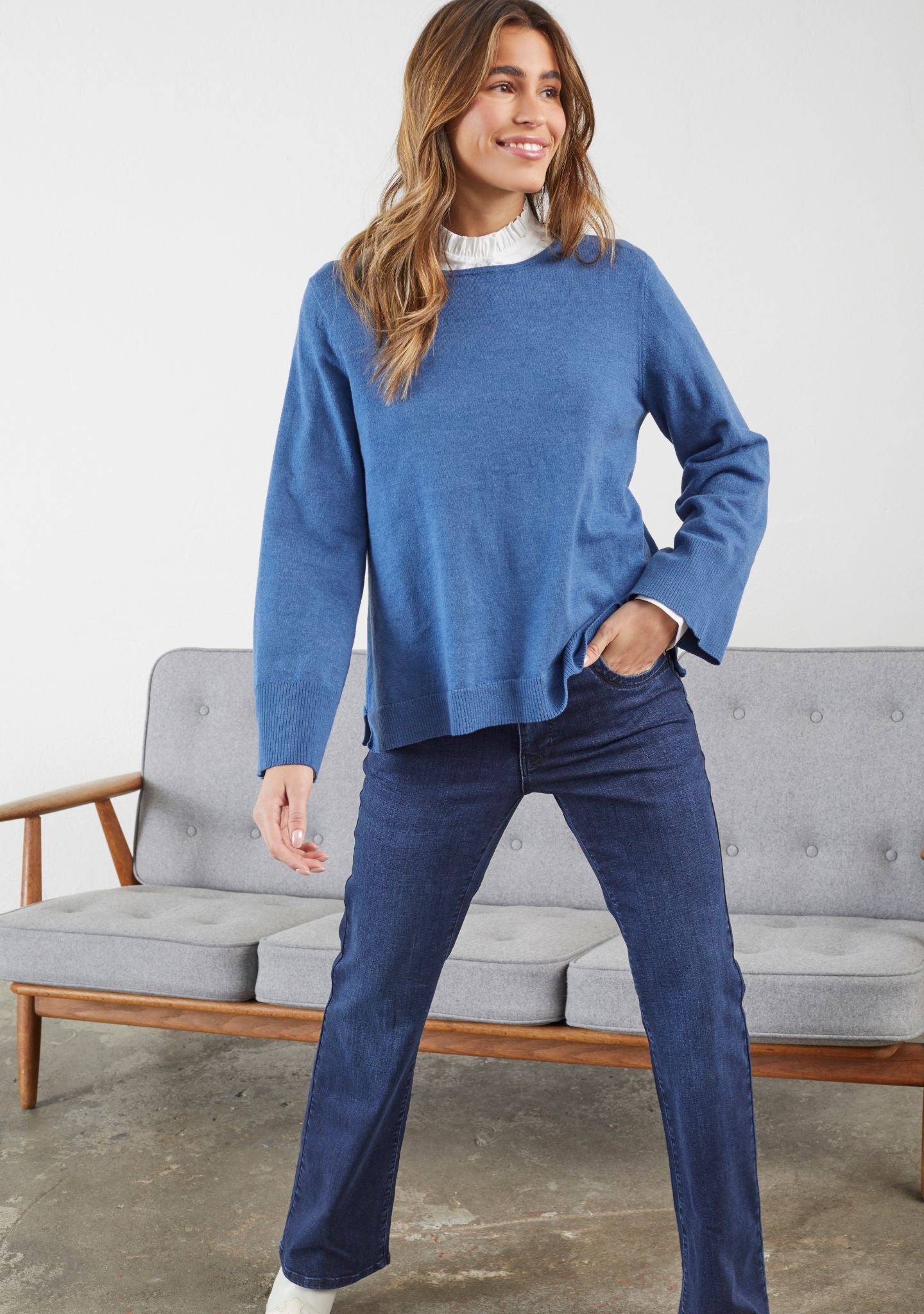 Den bløde bomuldsstrik med en smule elastan sikrer fleksibilitet og komfort, hvilket gør Frigga New Knit til et oplagt valg til både hverdagsbrug og lag-på-lag styling.