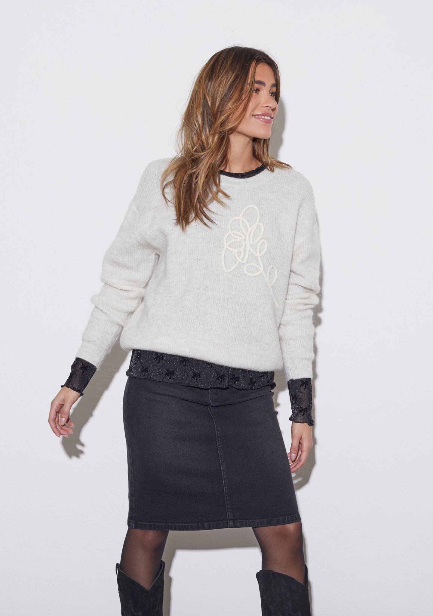 Kamo Knit Pullover er en let og luftig strik, der giver en afslappet og feminin følelse. Det enkle broderede motiv foran skaber et unikt og personligt udtryk, mens den bløde blanding af mohair og uld sikrer varme uden at føles tung.