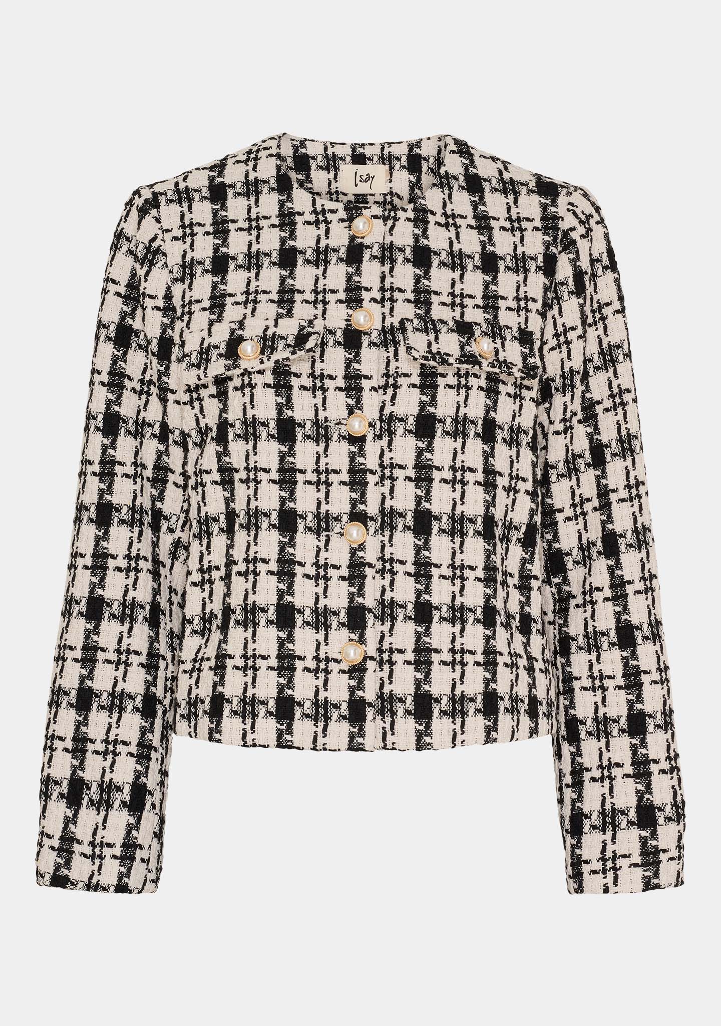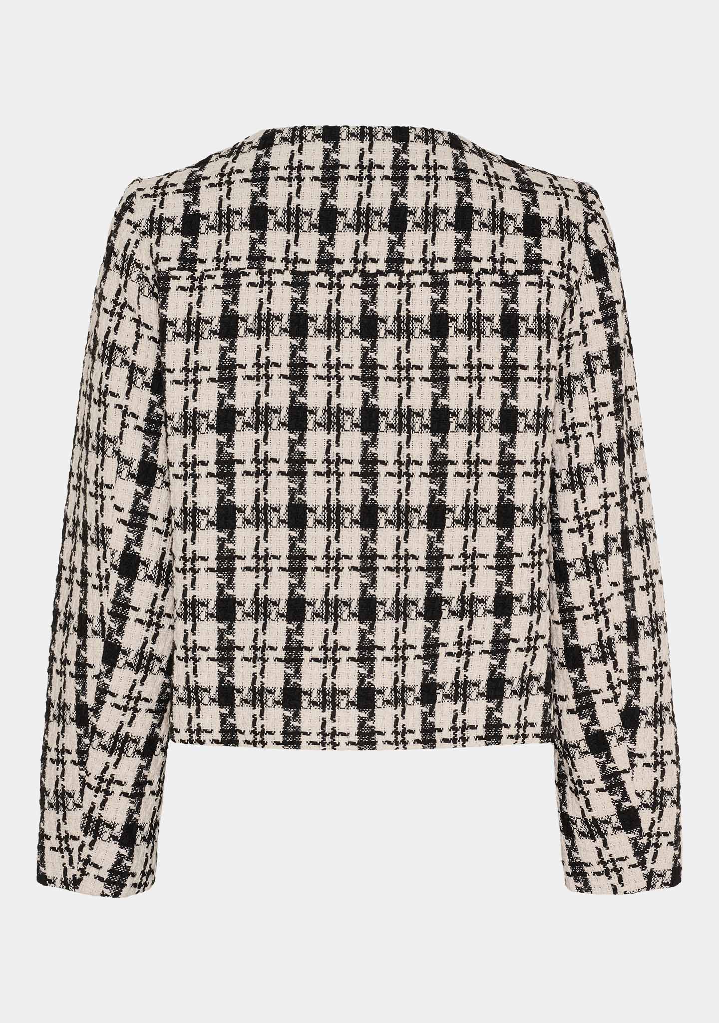 Forestil dig at træde ud ad døren iført din Emilie Blazer. Blazerjakken omfavner dig med en blød bouclé tekstur, der oser af elegance og komfort. Den klassiske rundede halsudskæring tilføjer et tidløst strejf, mens de smukke guldknapper foran skaber et blikfang. Uanset om du vælger at bære den åben eller lukket, vil Emilie Blazer være et statement-piece, der skiller sig ud. Den er skabt til at følge dig fra dag til aften og er lavet i en lækker uldblanding, der sikrer både varme og stil.