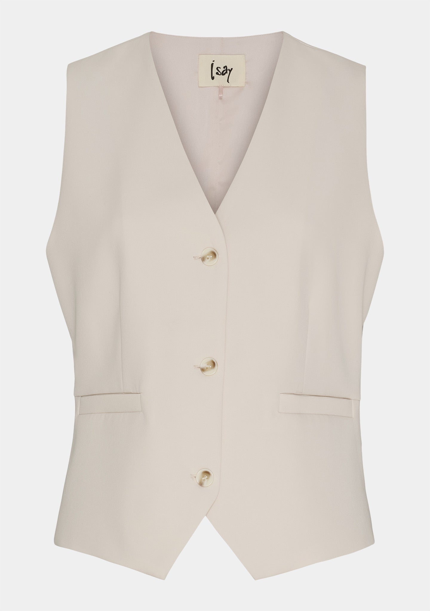 Josia Waistcoat er en tidløs vest, der giver et skarpt og stilfuldt udtryk. Den dybe V-udskæring og enkle knaplukning foran skaber et klassisk look, mens de små snydelommer tilfører en elegant detalje.