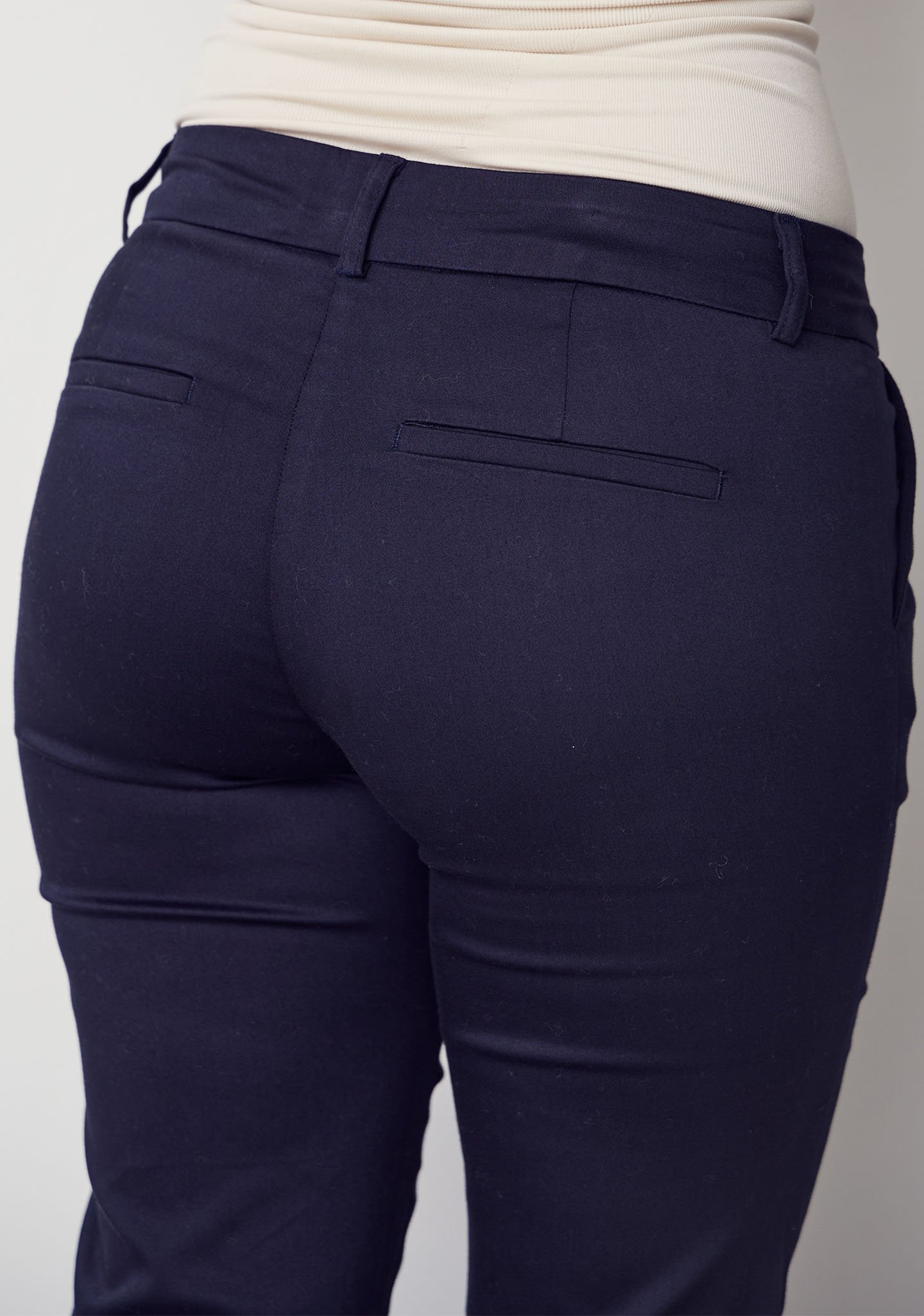 Her er vores klassiske bukser, Isay Classic Pant. De har en medium talje og en tidløs pasform, der sidder tæt omkring hofterne, er lidt løsere ved benene og smallere ved anklerne. Isay Classic Pant har et elegant, klassisk design og er behagelige at have på hele dagen. De er lavet af hovedsageligt bomuld, polyester og elastan, hvilket giver dig god bevægelsesfrihed og sikrer, at de sidder godt på kroppen. Bukserne har en fast linning som lukkes med to knapper, bæltestropper, lommer og kommer i en lang længde.
