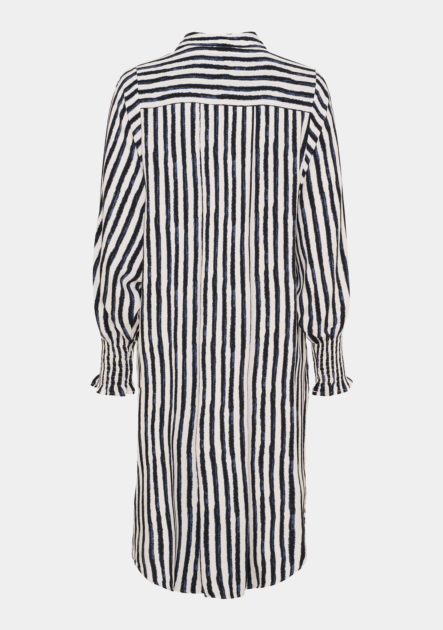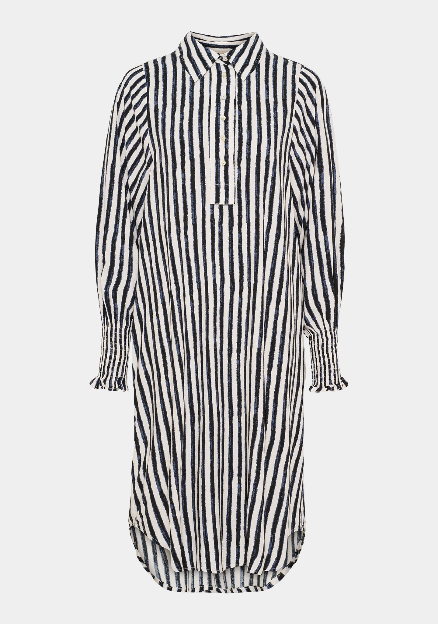 Asta Smock Dress er en afslappet og elegant skjortekjole, du ikke vil undvære i efterårsgarderoben. Med sit lette grafiske print og feminine detaljer bringer den et moderne, men tidløst udtryk, der fungerer til både hverdag og særlige anledninger. Kjolen er syet i 100% LENZING™ ECOVERO™ viskose – et ansvarligt valg, der føles behageligt mod huden og falder smukt om kroppen.