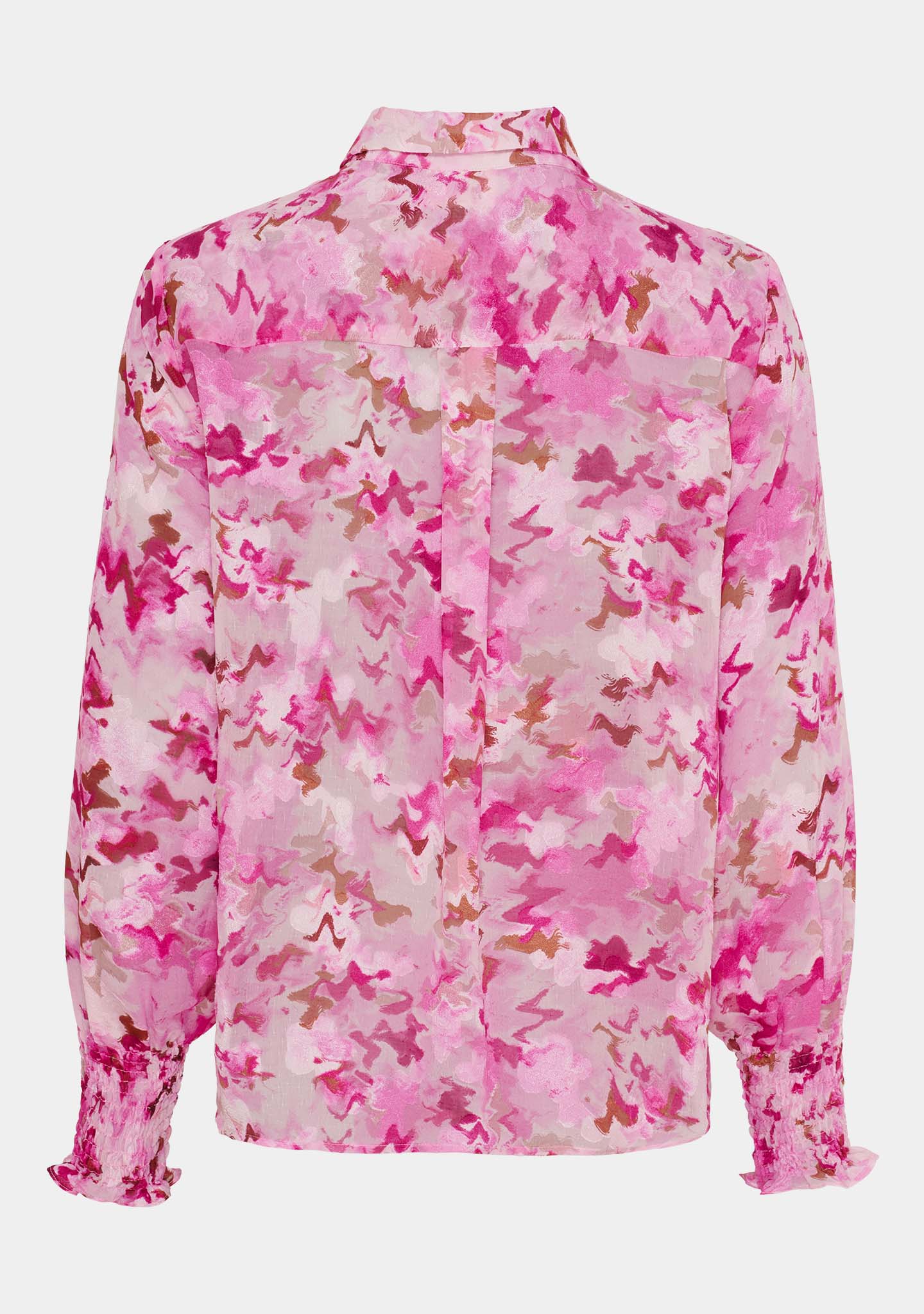 Vores elegante Vibse skjorte er alsidig og kan styles på mange måder. Denne skjorte er transparent i materialet og har en dejlig løs samt rummelig pasform. Den har en klassisk knaplukning med knapper hele vejen ned og en spids krave. Vibse skjorten har et flatterende print og de fineste smockdetaljer ved ærmeåbningen, som er med til at skabe et feminint look. Kan med fordel styles med et par bukser eller en smart nederdel. Og gerne med et par klassiske loafers for et fuldendt elegant look.