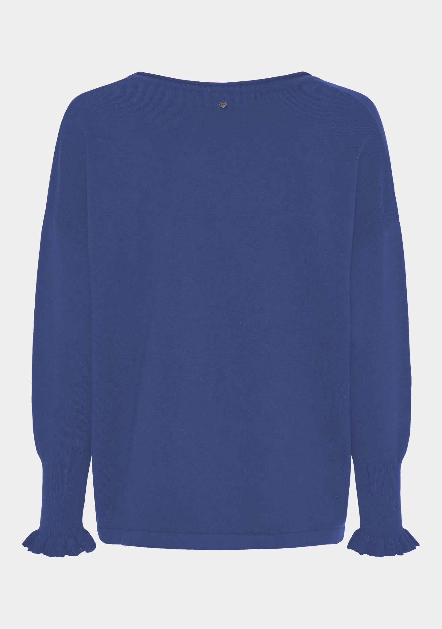 Frigga Smock Pullover er en blød og behagelig strik, der kombinerer afslappet komfort med feminine detaljer. Den enkle V-udskæring har en fint strikket kant, som giver et elegant udtryk. Strikken har lange ærmer med smockafslutning og små flæser, der skaber et romantisk og let udtryk. Fremstillet i en bomuldsblanding med en smule elastan, hvilket giver strikken et behageligt stræk og sikrer god bevægelighed.