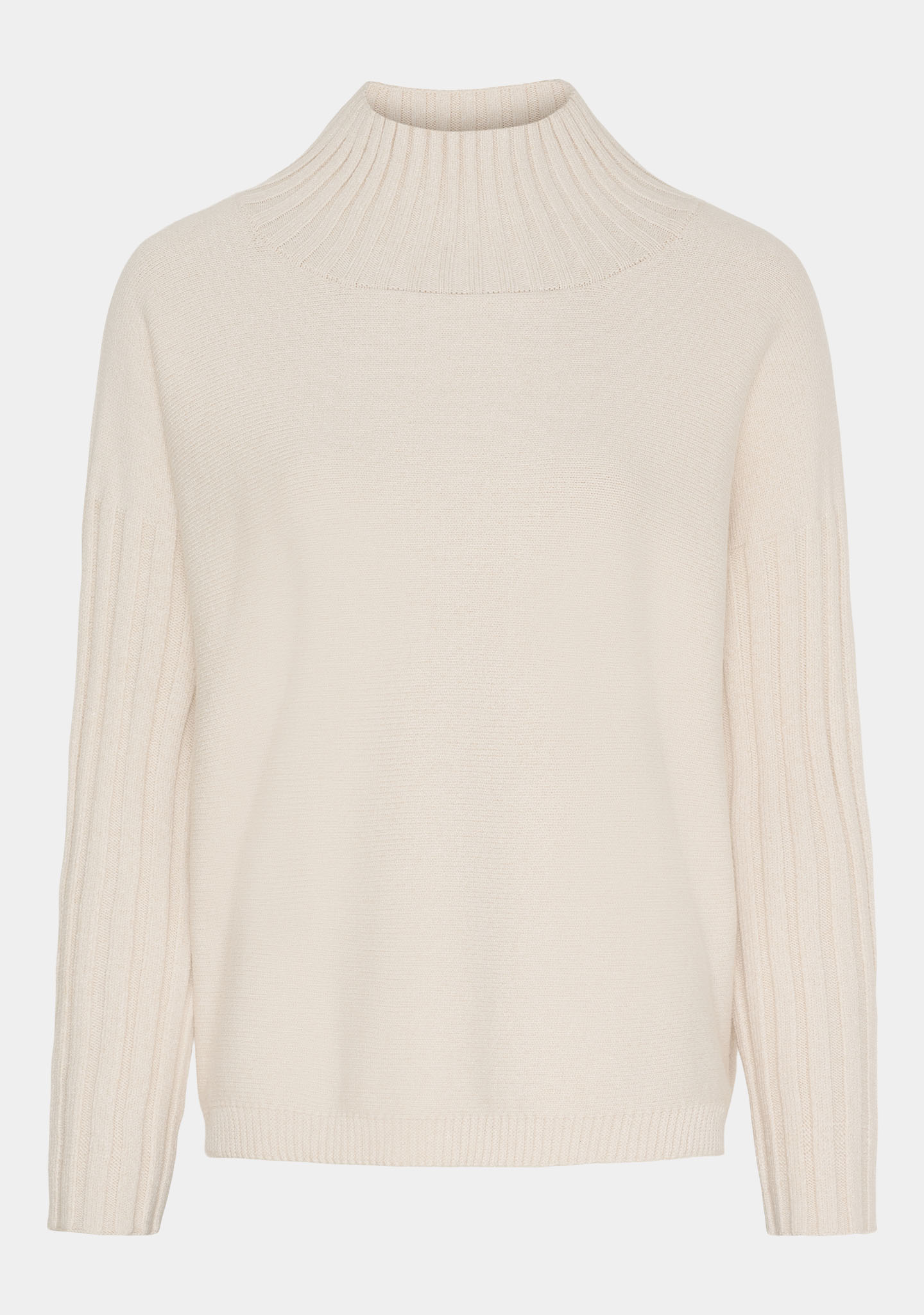 Kaddy Knit Pullover er en tidløs og komfortabel strik, der hurtigt bliver en favorit i garderoben. Den høje ribhals giver et stilrent udtryk, mens de lange ærmer med bred ribstruktur skaber en moderne detalje.