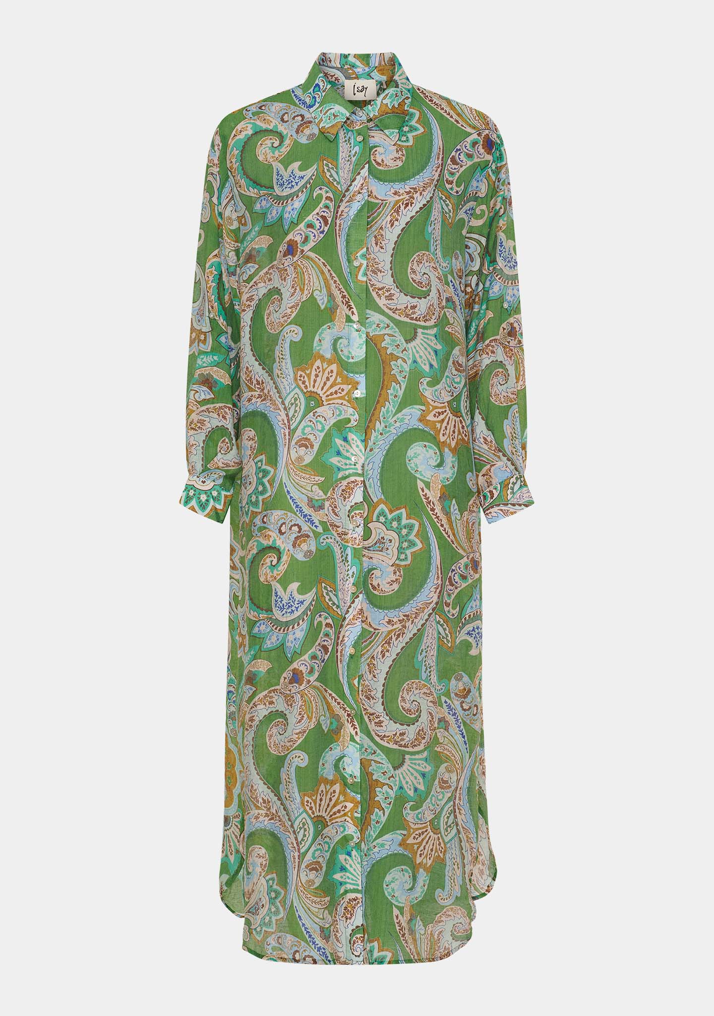 Lotta Shirt Dress - Grass Green Paisley