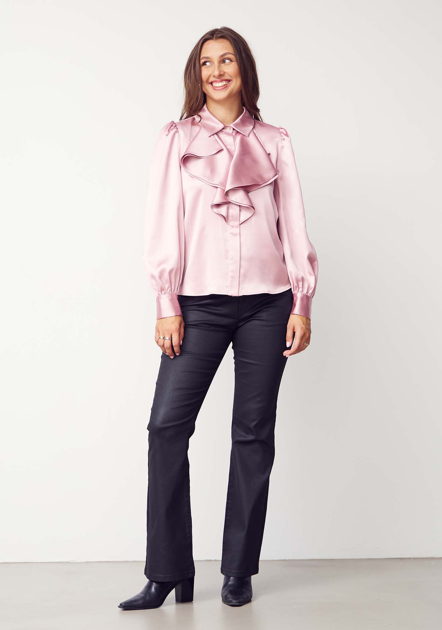 Kala Shirt er en sofistikeret skjorte med smukke detaljer, der tilfører et feminint og eksklusivt udtryk. Den har en dekorativ flæsedetalje foran og en klassisk skjortekrave, der gør den velegnet til både festlige og formelle anledninger.