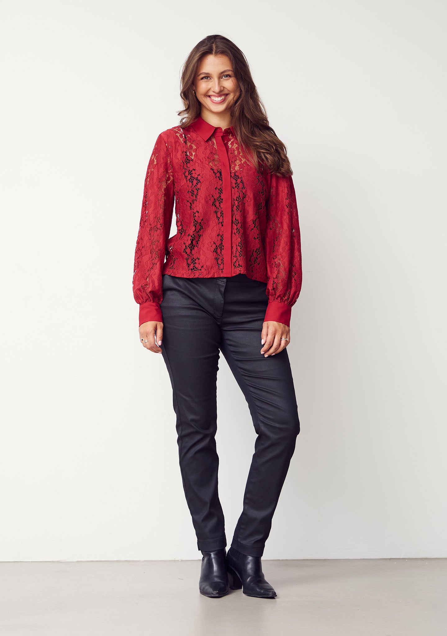 Kimie Lace Shirt er en elegant skjorte med et moderne twist. Den er designet i et smukt blondemønster, der giver en let og feminin transparens. Den klassiske krave og den skjulte knaplukning gør designet både tidløst og sofistikeret.