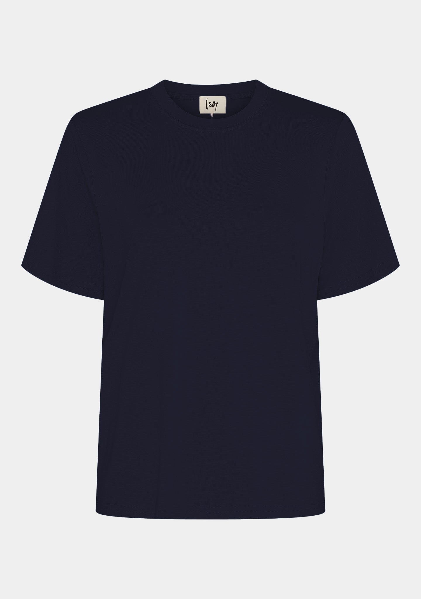 Gritt O-Neck T-shirt er din nye favorit til basisgarderoben denne sæson. Med sin runde udskæring og korte ærmer tilbyder denne t-shirt en klassisk stil, der aldrig går af mode. Den er lavet af blød og åndbar LENZING™ ECOVERO™ viskose med 9% elastan, hvilket gør den utroligt strækbar og komfortabel. Syningskanterne tilføjer en fin detalje, mens den normale pasform gør den alsidig og perfekt til ethvert outfit. Brug den alene eller som lag-på-lag under en cardigan eller jakke – Gritt O-Neck T-shirt er uundværlig i din garderobe.