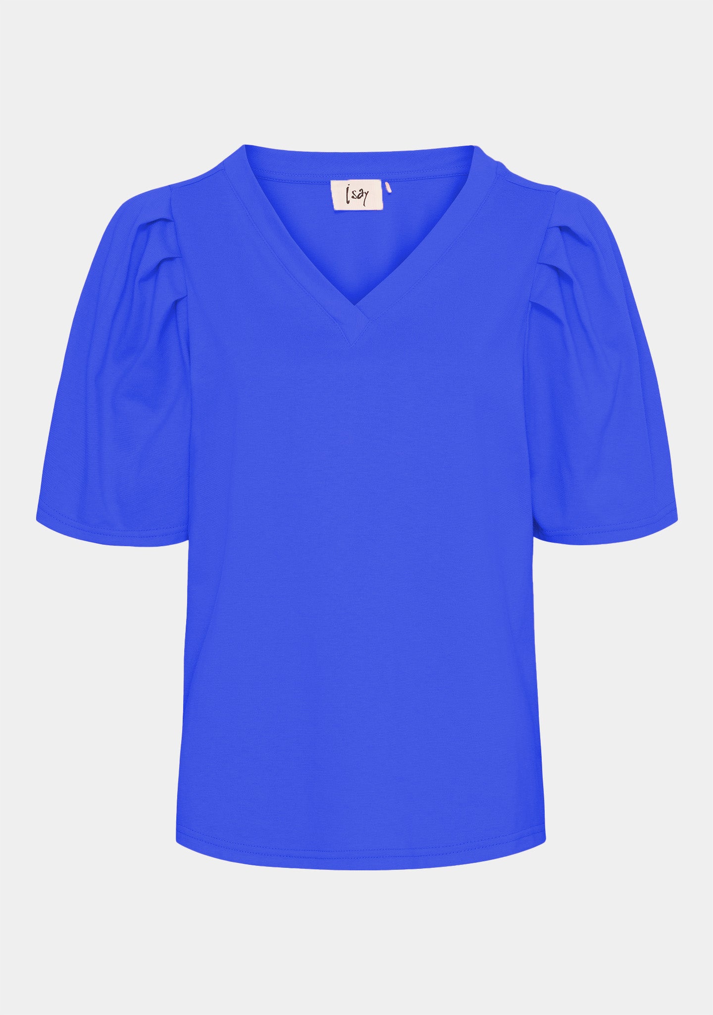 • Feminin t-shirt med korte pufærmer og v-hals