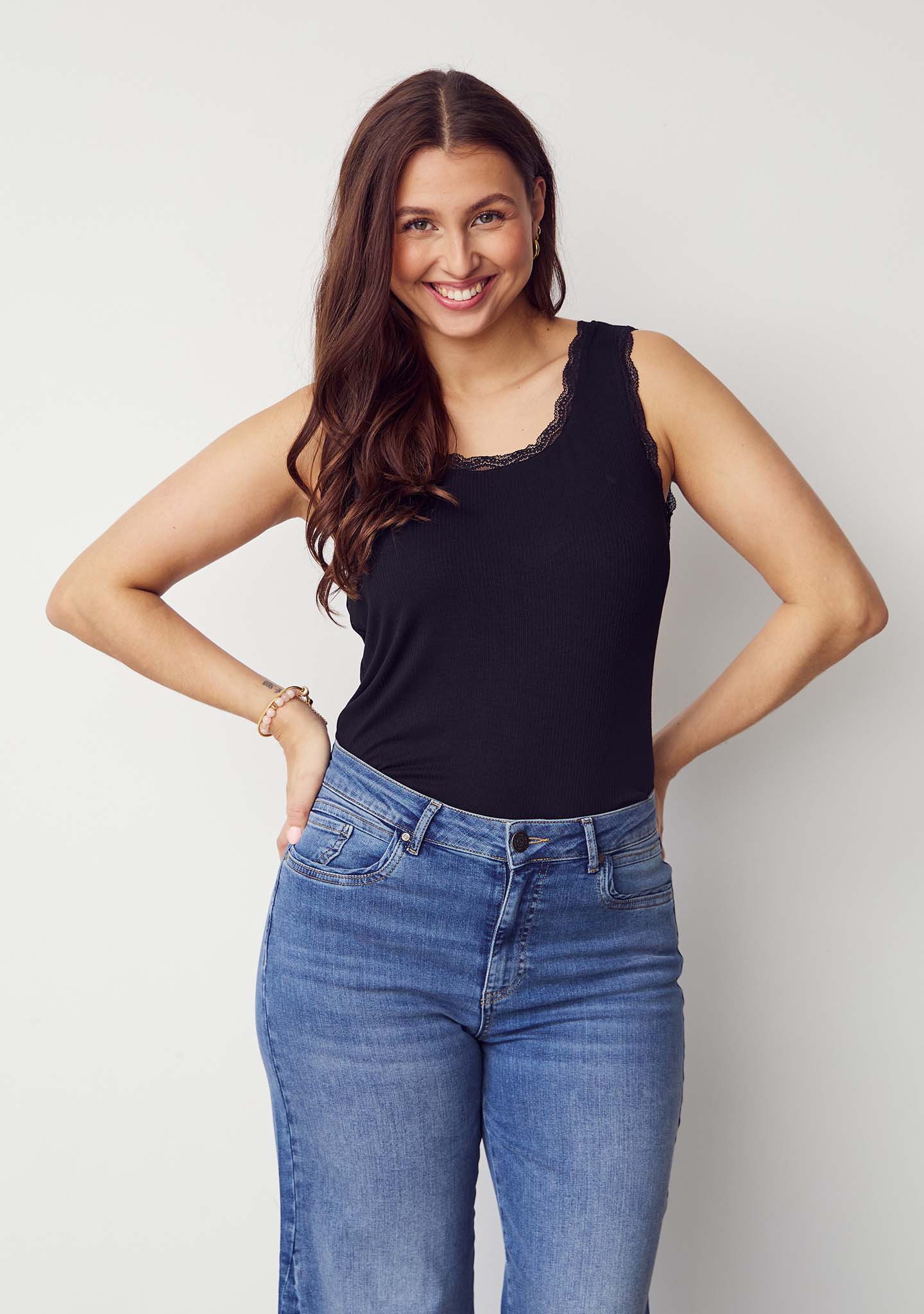 Dee O-Neck Top er en enkel og feminin top, der kombinerer komfort med delikate detaljer. Den bløde, ribbede kvalitet i viskoseblanding giver en behagelig pasform med let stræk, der følger kroppens bevægelser. De bølgede kanter ved halsudskæring og ærmegab tilfører et subtilt, romantisk touch. Toppen er alsidig og kan bruges alene på varme dage eller som lag-på-lag under skjorter, cardigans og jakker.